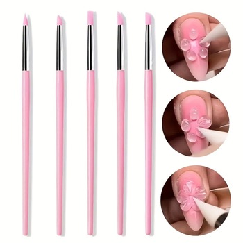فرشاة أظافر سيليكون مجعدة بطبقة مسطحة من العلامة التجارية الخاصة ، نصائح رسم التنقيط 5 قلم نحت ، فرشاة أظافر للاستخدام الاحترافي